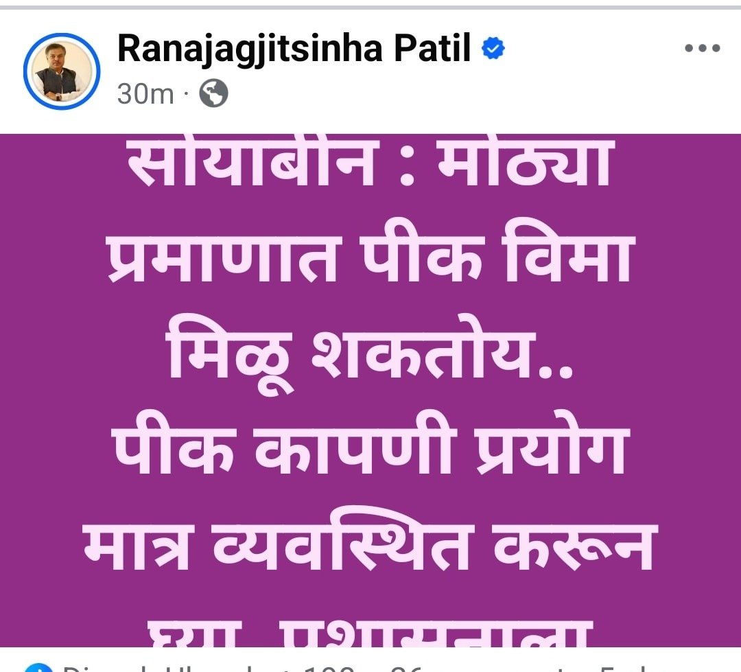 आमदार राणा पाटील यांची पोस्ट वरकरणी पाहता शेतकऱ्यांच्या हिताची आणि दिलासा देणारी वाटू शकते. पण संतप्त शेतकरी आज एकच प्रश्न विचारत आहे, “अहो आमदार, आधी पाण्यात उतरून बघा! शेतात उरलेली पिके काही दगडावर कोरलेले शिलालेख नाहीत की त्यांचे ‘प्रयोग’ करत बसावे! जे पीक डोळ्यासमोर सडून गेले, त्याची कसली कापणी आणि कसला प्रयोग?”