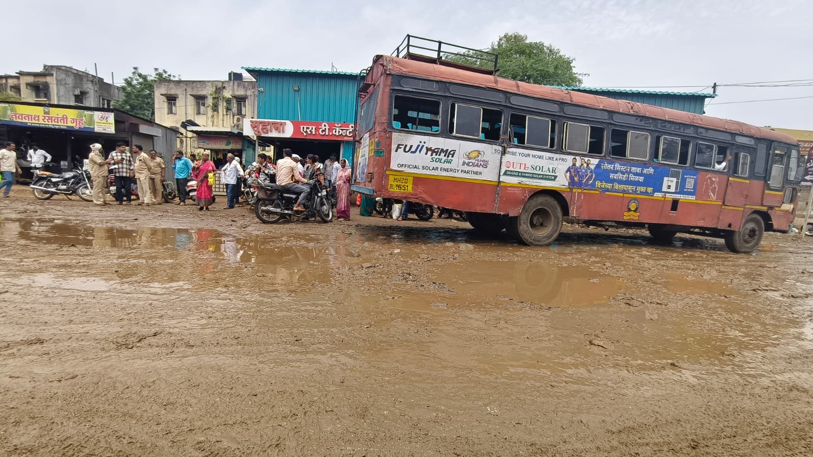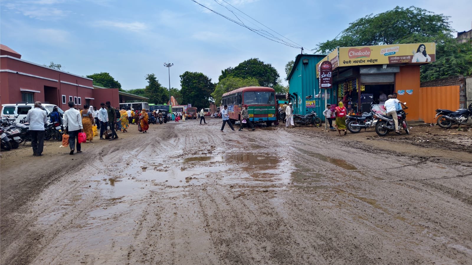 १५ आणि १६ मे रोजी झालेल्या पावसाने बसस्थानकाच्या कामाचा दर्जा पूर्णपणे उघड केला. छत गळत असल्याने अनेक ठिकाणी पाणी साचले आहे, तर स्थानकाच्या आवारात चिखलाचे साम्राज्य पसरले आहे. प्रवाशांना, विशेषतः महिला आणि वृद्धांना, हा चिखल तुडवतच बस पकडावी लागत आहे. या मनस्तापामुळे प्रवासी वर्गात तीव्र संतापाची लाट उसळली आहे. नागरिकांच्या अपेक्षांवर अक्षरशः पाणी फेरले गेले आहे.