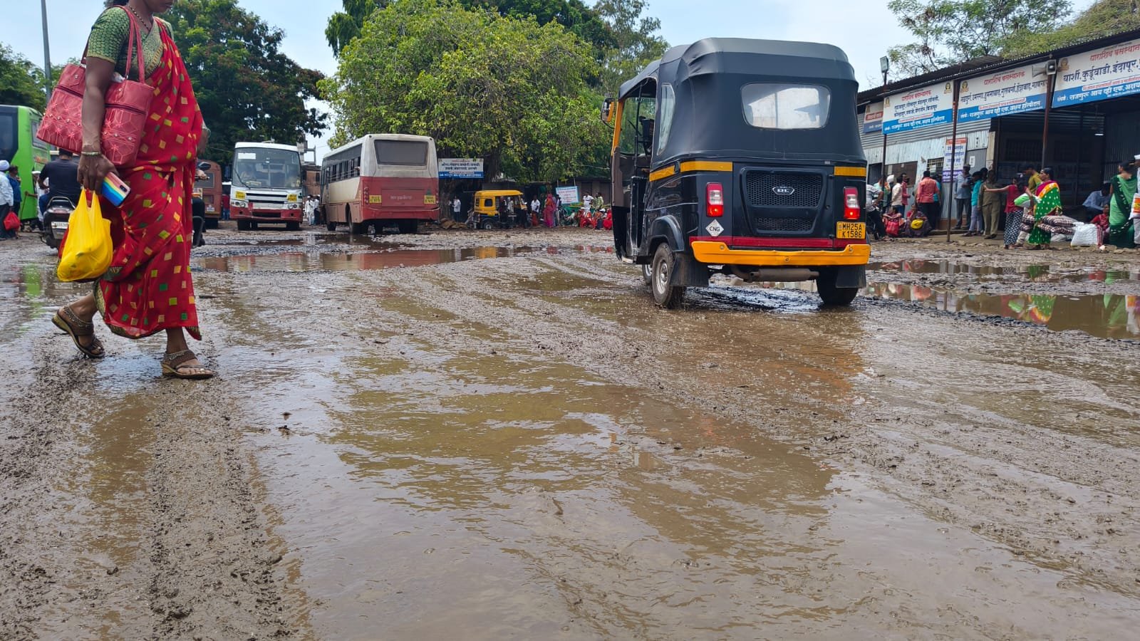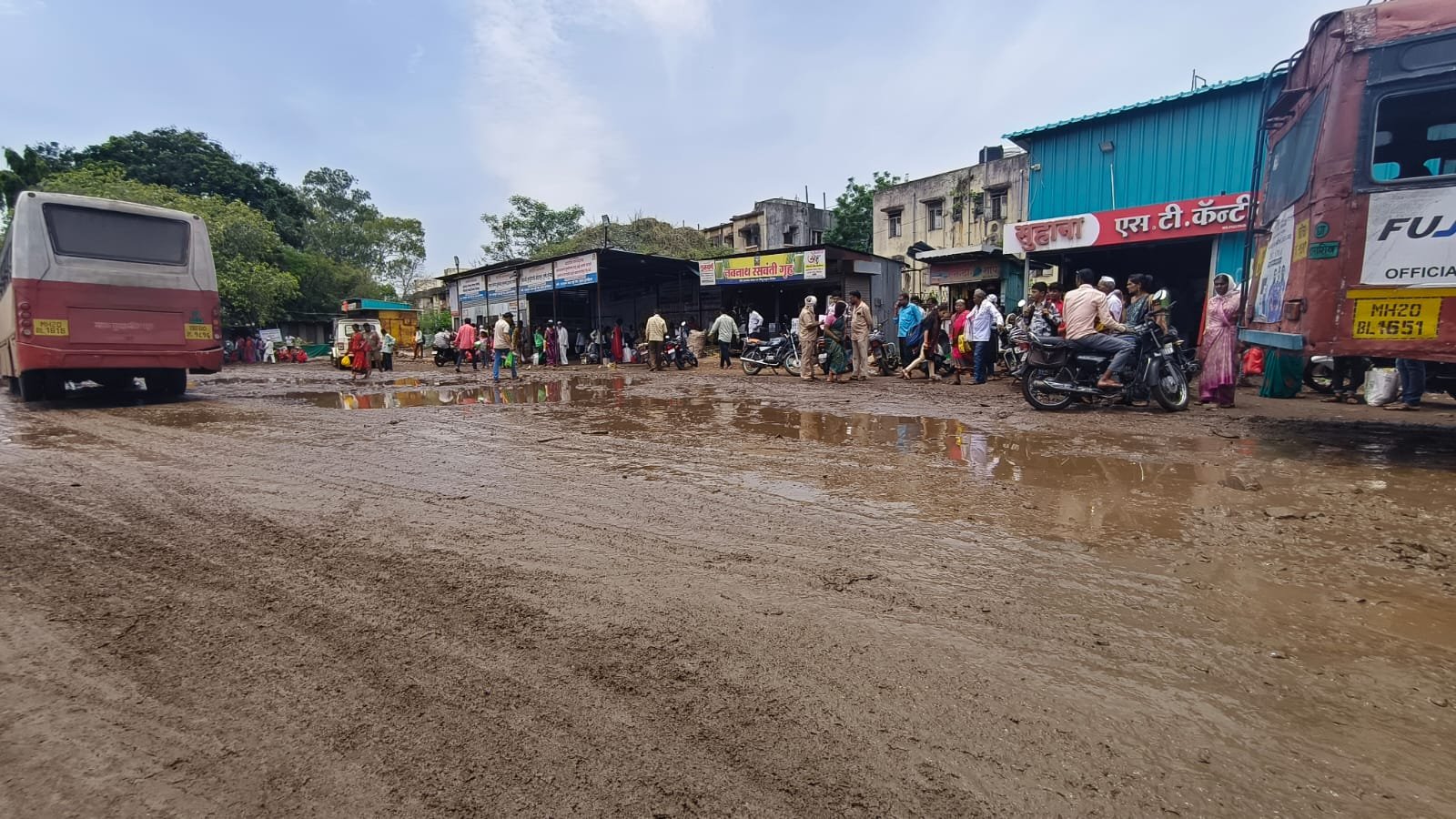 प्रवाशांचा संताप अनावर: चिखल तुडवत गाठावी लागतेय बस