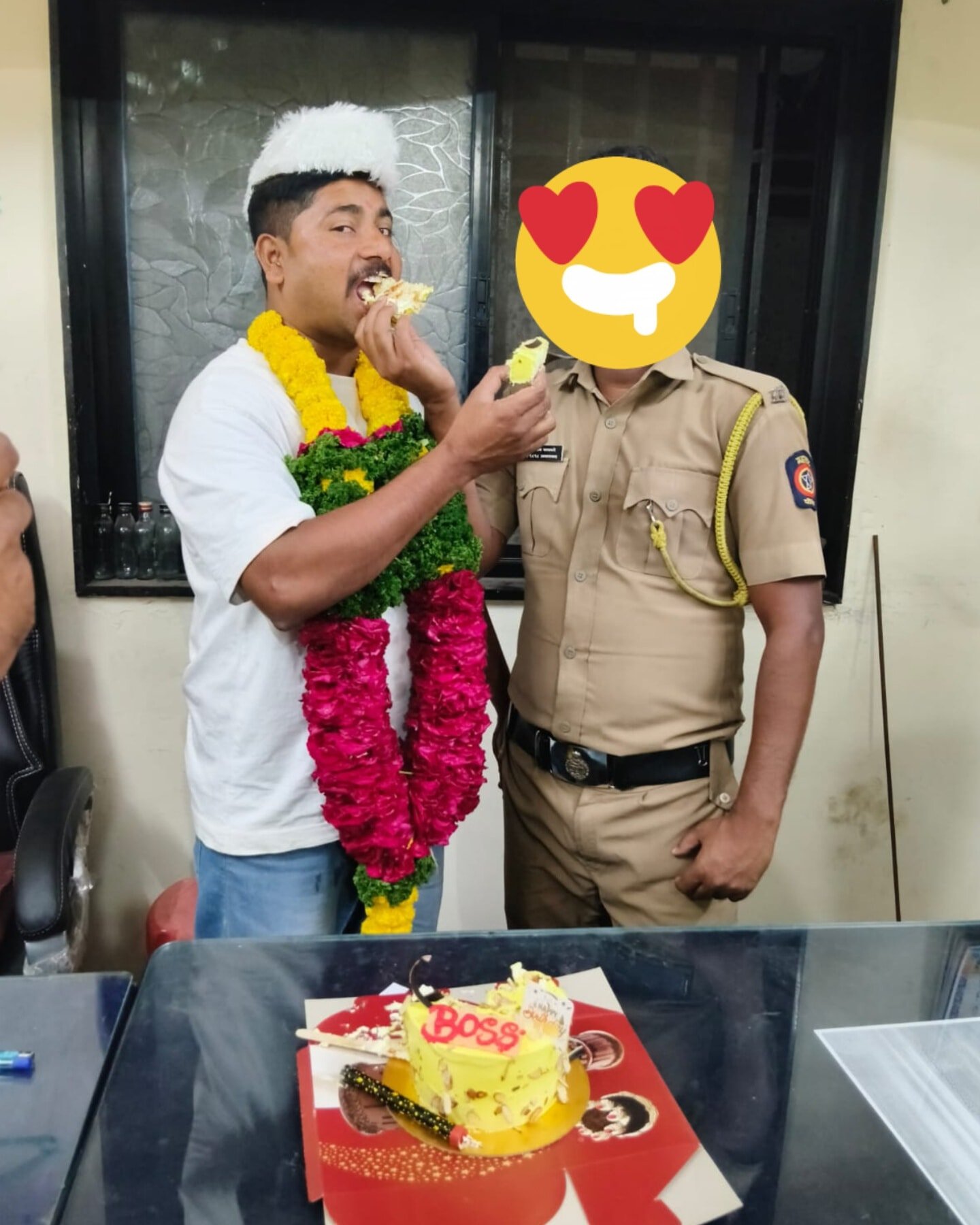 शासकीय कार्यालयात वाढदिवस साजरा करण्यास सक्त मनाई आहे. मात्र, नियम धाब्यावर बसवून शहर पोलीस ठाण्यात चक्क ‘बॉस’ लिहिलेला केक कापून अंमलदार विष्णू बेळे यांचा वाढदिवस साजरा करण्यात आला. कहर म्हणजे, सोशल मीडियावर व्हायरल झालेल्या या वाढदिवसाच्या फोटोंमध्ये पोलीस ठाण्याच्या खिडकीत चक्क दारूच्या चार रिकाम्या बाटल्या स्पष्ट दिसत आहेत! आधीच एका प्रकरणात कार्यालयीन चौकशीच्या फेऱ्यात अडकलेल्या या महाशयांनी पोलीस ठाण्यालाच दारूचा अड्डा बनवले की काय? असा संशय यातून निर्माण झाला आहे. हा ‘जल्लोष’ कुणाच्या आशीर्वादाने सुरू होता, याचे उत्तर पोलीस प्रशासनाला द्यावेच लागेल.