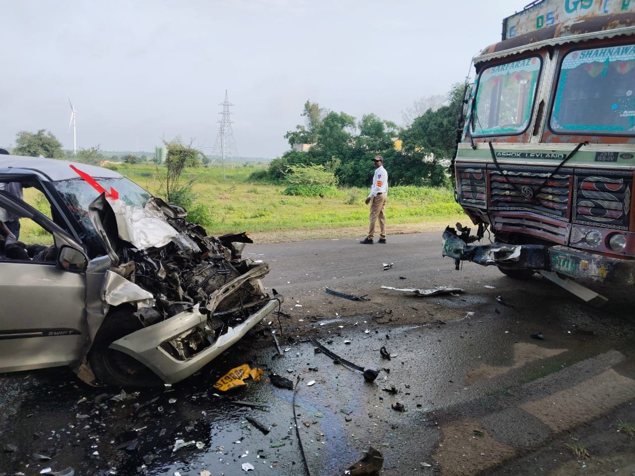 मिळालेल्या माहितीनुसार, आज सकाळी ७ वाजून २० मिनिटांच्या सुमारास हा अपघात घडला. हैदराबादकडून मुंबईच्या दिशेने जाणारा ट्रक (क्रमांक TS.13.UB.8676) आणि सोलापूरहून कर्नाटककडे जाणारी स्विफ्ट कार (क्रमांक KA.41.B.2600) यांची साई प्लाझा हॉटेलजवळ जोरदार धडक झाली. धडक इतकी भीषण होती की स्विफ्ट कारचा समोरील भागाचा पूर्णपणे चक्काचूर झाला.