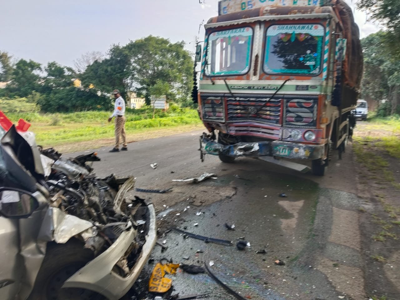 या कारमधून एकूण पाच जण प्रवास करत होते. अपघातात दोघांचा मृत्यू झाला असून, तीन जण गंभीर जखमी झाले आहेत. जखमींमध्ये मल्लोर रामच कल्ला (वय २७) आणि गिरिजाप्पा जगन्नाथ शरणम्मा (वय ४०) यांचा समावेश असून, दोघेही गुलबर्गा, कर्नाटक येथील रहिवासी आहेत.